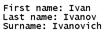 echo "\nFirst name: $firstName", "\nLast name: $lastName",