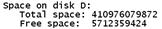 echo "Space on disk D:",