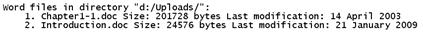 print "Word files in directory \"$UploadsDir\":";
