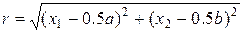 r=sqrt((x1-0.5*a)^2+(x2-0.5*b)^2);