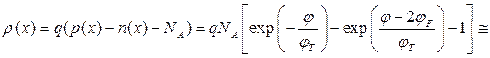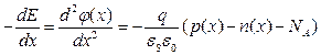 Одномерное уравнение Пуассона для объема полупроводника p- типа имеет вид: