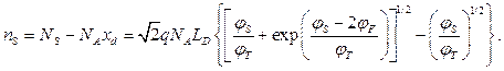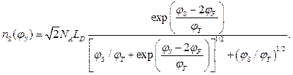 , получаем выражение для поверхностной плотности электронов (см-2) в канале как функции поверхностного потенциалa: