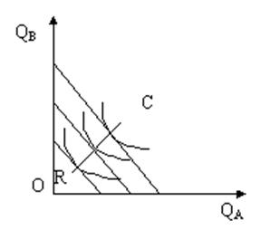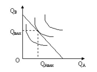 График равновесия потребителя приведенный на рис. 1. показывает, что оно возникает в точке касания бюджетной линией наиболее отдаленной от начала координат кривой безразличия, которая достигается потребителем и обеспечивает ему полное использование дохода и максимальную удовлетворенность.