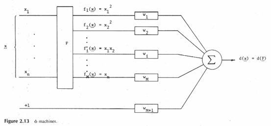 Ф-машины (φ) вид классификаторов, в которых для классификации используются φ функции. φ функция (обобщенная дискриминантная функция записывается в виде: