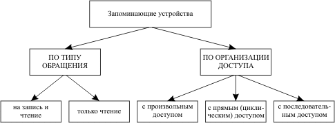 Запоминающие устройства можно классифицировать по целому ряду параметров и признаков. На рис. 1 представлена классификация по типу обращения и организации доступа к ячейкам ЗУ.