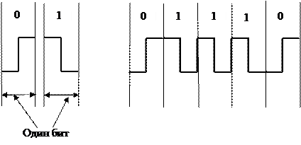 Современный подход заключается в комбинировании синхронизирующей информации и данных. Разработано несколько схем такого кодирования. Одна из таких схем показана на рисунке ниже и известна как фазовое или манчестерское кодирование.