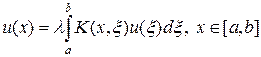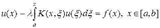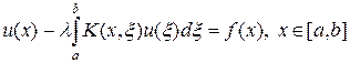 Постановка задачи. Интегральным называют уравнение, в котором неизвестная функция u (x) входит под знак интеграла. В одномерном случае интегральное уравнение имеет следующий вид: