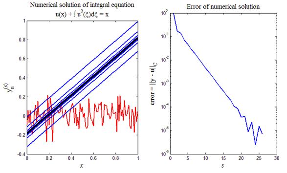 Рис.1. Численное решение интегрального уравнения (7) с помощью