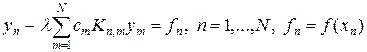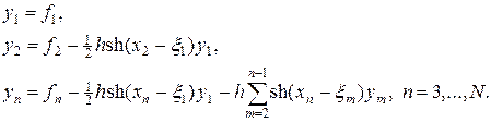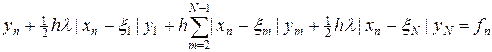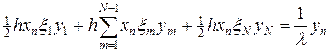 Введем сетки по переменным x и x Î [0,1]: xn = h (n - 1), n = 1,…, N, xm = hm, m = 1,…, N, h = 1/(N - 1). Аппроксимируем интеграл в (7) по формуле трапеции и запишем уравнение (7) в узлах сетки, тогда, считая, что yn» u (xn), получим