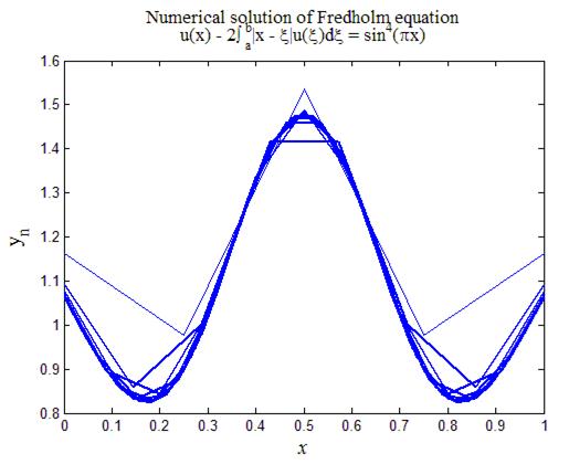 Рис.6. Численное решение уравнения Фредгольма (30) путем