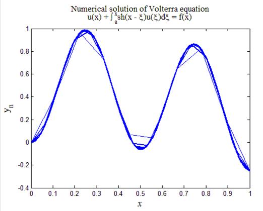 Рис.5. Численное решение уравнения Вольтерра (17) с помощью