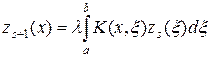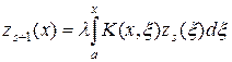 называют уравнением Фредгольма второго рода. Если ядро K (x, x) = 0 при x < x, т.е. ядро отлично от нуля на треугольной области, то уравнение (3) переходит в уравнение, которое принято называть уравнением Вольтерра второго рода: