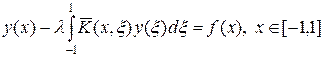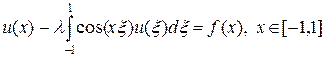 В качестве численного примера рассмотрим решение уравнения Фредгольма, имеющего следующий вид: