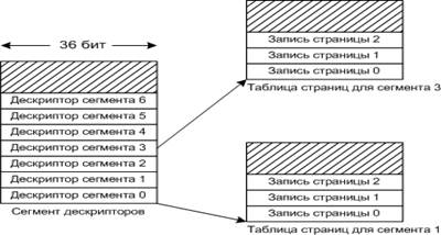 Каждая программа в ОС MULTICS обеспечивалась до 218 сегментами (более 250 000), каждый из которых длиной до 65 536 (36-разрядных) слов; формировалась своя таблица сегментов для каждой программы; для каждого сегмента в таблице сегментов хранился дескриптор, представляющий собой 36-разрядное слово.