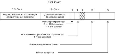 Дескриптор сегмента — это 36-разрядное слово, которое хранится в таблице сегментов.