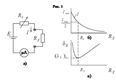 Нетрудно выяснить, что преобразование такого вида выполняется в простейшем омметре со стрелочным указателем — микроамперметром (рис 3а). Измеряемой величиной является