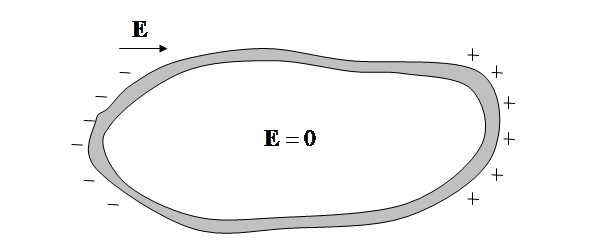 Вывод. Замкнутая проводящая оболочка экранирует внутреннюю область пространства от внешнего электрического поля.