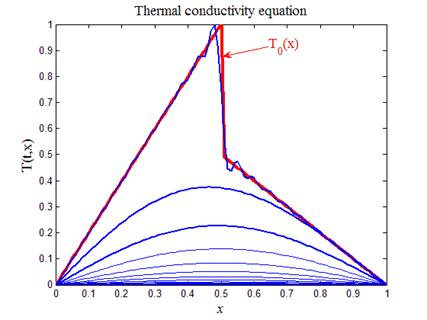 На рис.1 приведен итог работы кода программы листинга_№1. Из графика видно, как начальные неоднородности, намеренно выбранные в виде острого кусочно-непрерывного профиля, со временем становятся гладкими линиями.