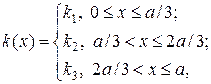 Рассмотрим пример использования разностной схемы (35) для расчета теплопроводности среды, состоящей из трех сред с разными коэффициентами теплопроводности, т.е.