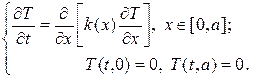 а на левой x = 0 и правой x = a границе согласно (37) будем поддерживать нуль температуры, т.е.