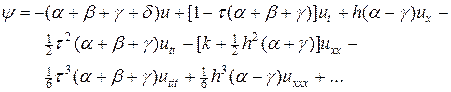 Метод неопределенных коэффициентов заключается в том, что в качестве разностной схемы берут линейную комбинацию решений в узлах некоторого шаблона. Коэффициенты линейной комбинации определяют из условия максимального порядка соответствующей невязки по t и h.
