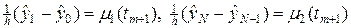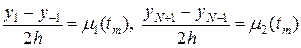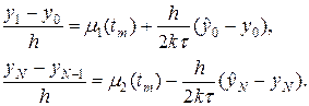Исключая из (47), (48) фиктивные точки и значения функции в них, находим граничные условия второго порядка точности по h: