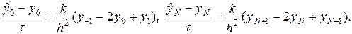 Аппроксимируем левое и правое граничное условие с помощью центральной разности, т.е.
