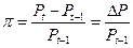 где π – уровень инфляции, Pt – уровень цен текущего периода, Pt-1 – уровень цен предыдущего периода.