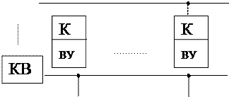 Внешние устройства (ВУ) подключаются к интерфейсу ввода-вывода (ИВВ) через контроллеры (К) по схеме, представленной на рис. 1.