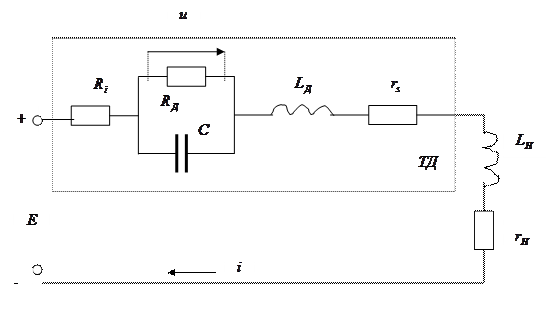 - малые отклонения напряжения и тока, соответственно, от равновесных значений