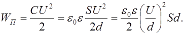 Выразим энергию заряженного конденсатора через параметры электрического поля в зазоре между его обкладками. Для определенности возьмем плоский конденсатор, емкость которого
