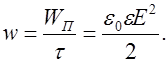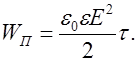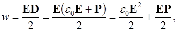где первое слагаемое совпадает с плотностью энергии электрического поля в вакууме, а второе слагаемое представляет собой энергию, которая затрачивается на поляризацию диэлектрика.