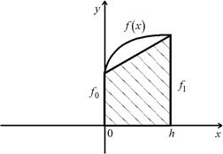приближенно заменяется площадью заштрихованной трапеции, показанной на рисунке.