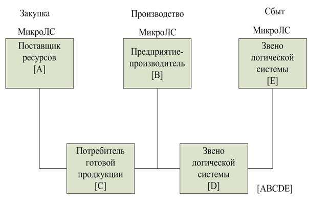 На рис.1.3 представлены пять микрологистических систем – А, B, C, D и E, которые в совокупности образуют макрологистическую систему АBCDE.