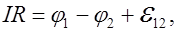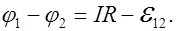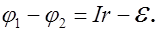 Разность потенциалов на зажимах источника как неоднородном участке цепи (см. (7.9))
