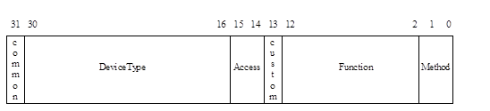 Возвращаясь к функции DeviceIoControl(), код управления в/в (IOCTL) указывается во втором параметре этой функции. Код управления в/в имеет специальный формат, указывающий метод передачи буфера и другую информацию. Этот формат будет рассмотрен в следующем разделе.