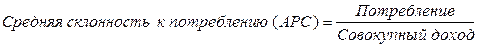Средняя склонность к потреблению показывает долю планируемых потребительских расходов в общем объеме совокупного дохода: