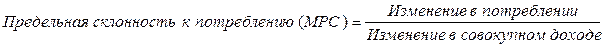 Предельная склонность к потреблению показывает, на какую величину изменится объем потребления при увеличении совокупного дохода на единицу: