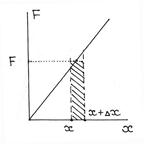 Видно, что она почти равна площади заштрихованного прямоугольника, тем точнее, чем меньше Dx. Теперь становится ясно, чему равна полная работа по растяжению пружины от x=0 до x=x0. Это площадь всего треугольника. Она равна половине произведения катетов, то есть