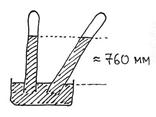 Если взять чашку со ртутью, погрузить в нее целиком запаянную с одного конца трубку, а затем поднять ее, не допуская попадания пузырька воздуха в верхний конец, то ртуть поднимется примерно на 760 мм. Причем эта высота не зависит от наклона трубки. В чем причина? Ясно, что на нижнем уровне ртути давление во всех точках должно быть одинаковым. Снаружи оно равно атмосферному. Но внутри трубки атмосферы нет. Есть немного паров ртути в «торичеллиевой пустоте», но их давление очень мало. Поэтому, на нижний уровень ртути в трубке действует лишь давление гидростатического столба ртути, равное атмосферному. Оно, в среднем, рано 760 мм. рт. ст. или 101.3 кПа. Почему бессмысленно для измерения атмосферного давления использовать водный манометр? С помощью ртутного манометра можно исследовать убывание атмосферного давления с высотой. Оно уменьшается на 1 мм. рт. ст при подъеме на 12 м. Поскольку на высоте давление оказывает уже более тонкий слой воздуха, который меньше весит. Казалось бы, на высоте 1000 м атмосфера должна закончиться (проверьте). Но, поскольку плотность воздуха уменьшается вместе с падением давления, то падение давления с высотой замедляется. Атмосфера «заканчивается» на высоте примерно 100 км.