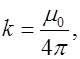- коэффициент пропорциональности, зависящий от выбора единиц измерения и магнитных свойств среды, где протекает ток; в системе СИ для вакуума
