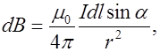 2) Для магнитной индукции поля, создаваемого элементом тока
