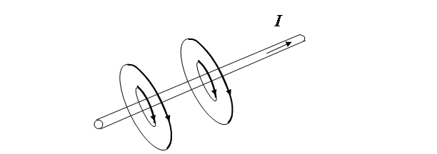 Рис. 6.5. Линии индукции магнитного поля прямолинейного провода с током