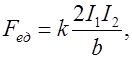 в расчете на единицу длины провода пропорциональна этим токам и обратно пропорциональна расстоянию