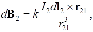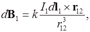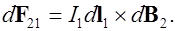 - вектор длины отрезка провода, направленный вдоль тока от начала к концу отрезка провода.