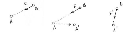 Быстро переместим тело А, в положение А’. Тело В «почувствует это изменение не сразу. Некоторое время сила будет направлена в точку А и лишь через конечный промежуток времени ее направление и величина изменится и станет F’. Это время необходимо для изменения свойств пространства вблизи заряда В. Заряд А меняет пространство вокруг себя, это изменение пространства и называют полем. При изменении положения источника А, постепенно изменяется и окружающее поле. Скорость, с которой распространяется это изменение, очень велика. В вакууме эта скорость – максимально возможная и равна 299792458 м/с. Вот почему это запаздывание в изменении направления силы F почти неуловимо. Скорость очень велика, с точки зрения человека – почти бесконечна. Вот почему теория дальнодействия так долго считалась правильной.