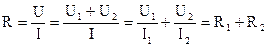 Получено правило вычисления сопротивления последовательно соединенных проводников. Сопротивление R всегда больше каждого из сопротивлений R1 и R2.