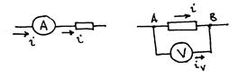 Идеальным амперметром называется амперметр с нулевым собственным сопротивлением. Для него UA=0. Идеальным вольтметром называется вольтметр с бесконечным собственным сопротивлением. Для него iv=0. Ясно, что реальные приборы удовлетворяют этим условиям лишь приближенно.