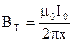 Тангенсные измерительные приборы. Для измерения величины индукции неизвестного магнитного поля (например, Земли) разумно предложить способ сравнения этого поля с каким-нибудь известным. Например, с полем длинного прямого тока. Тангенсный метод дает такой способ сравнения. Предположим, мы хотим измерить горизонтальную составляющую магнитного поля Земли в некоторой точке. Разместим рядом с ней длинный вертикальный провод, чтобы его середина была близко к этой точке, а длина была много больше расстояния до нее (рисунок, вид сверху).