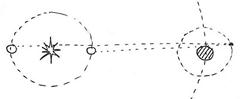 Поскольку вектор скорости Земли описывает за год окружность, то направление телескопа на звезду так же опишет окружность, и на видимой небесной сфере за год звезда опишет маленький кружок. Угловой размер этого кружка 2α=40.9” – это и есть угол аберрации, соответствующая ему скорость c=303000 км/с.